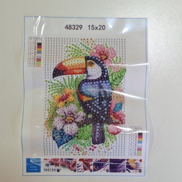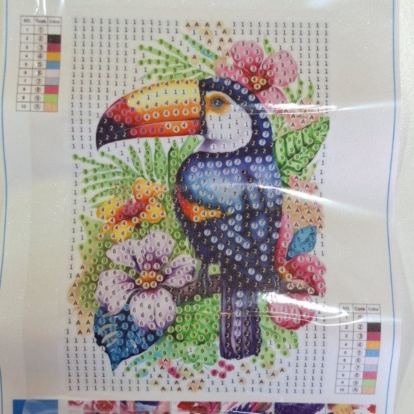 Para completar la obra, se debe colocar cada cristal en el lugar correcto siguiendo el código de color indicado en el lienzo.