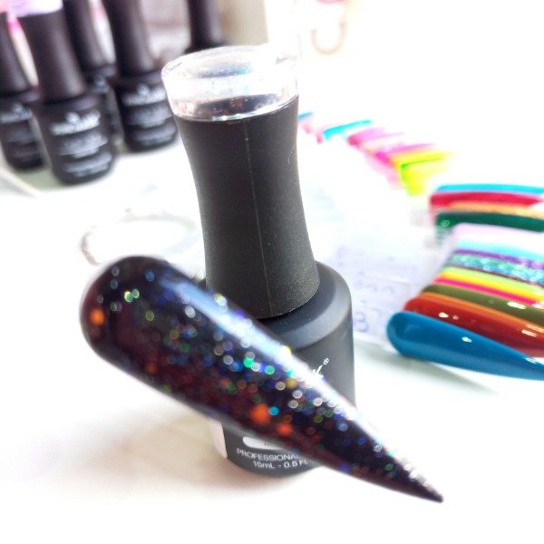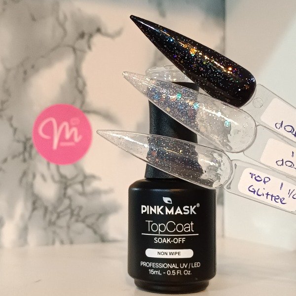 En el muestrario de abajo se puede ver en el muestrario una capa de top, en el del medio dos capas y en el de arriba esmaltado sobre base negra