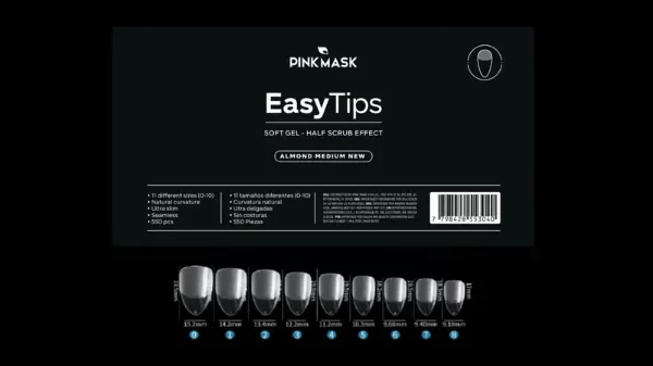 Tips de gel transparentes y prelimados, ideales para trabajos de extensión soft gel o press on. Producto soak-off. Presentación disponible en caja de 550 piezas con 9 tamaños diferentes. Curvatura natural, ultra delgadas para lograr un óptimo ajuste sobre las uñas. Forma: Almond.