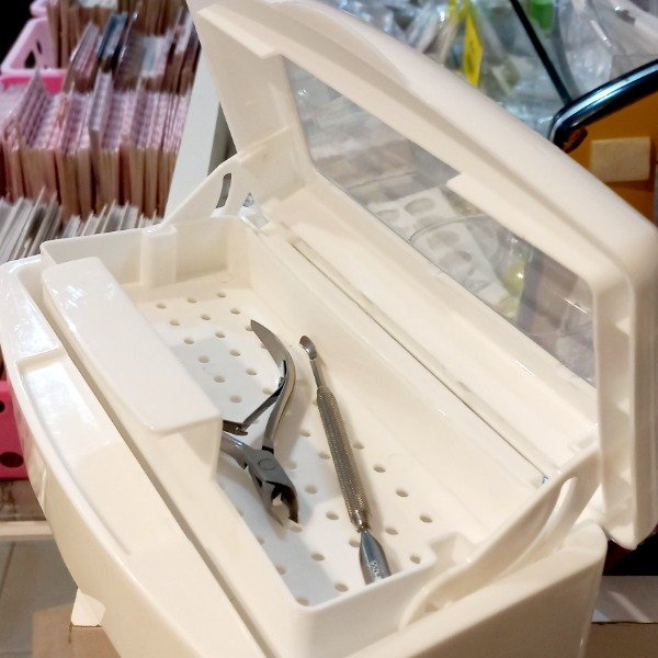 Agregar loción bactericida en el recipiente (puede ser detergente trienzimatico diluido), coloque las herramientas en su interior previamente lavadas con un cepillito para que no tenga ningun tipo de materia organica. Esta bandeja es para realizar una desinfeccion de las herramientas, no esterilización