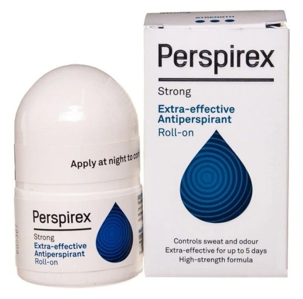 Perspirex Strong es un antitranspirante de alta eficacia para personas con sudoración intensa. Actúa directamente sobre las glándulas sudoríparas reduciendo la transpiración hasta por 3-5 días con una sola aplicación.